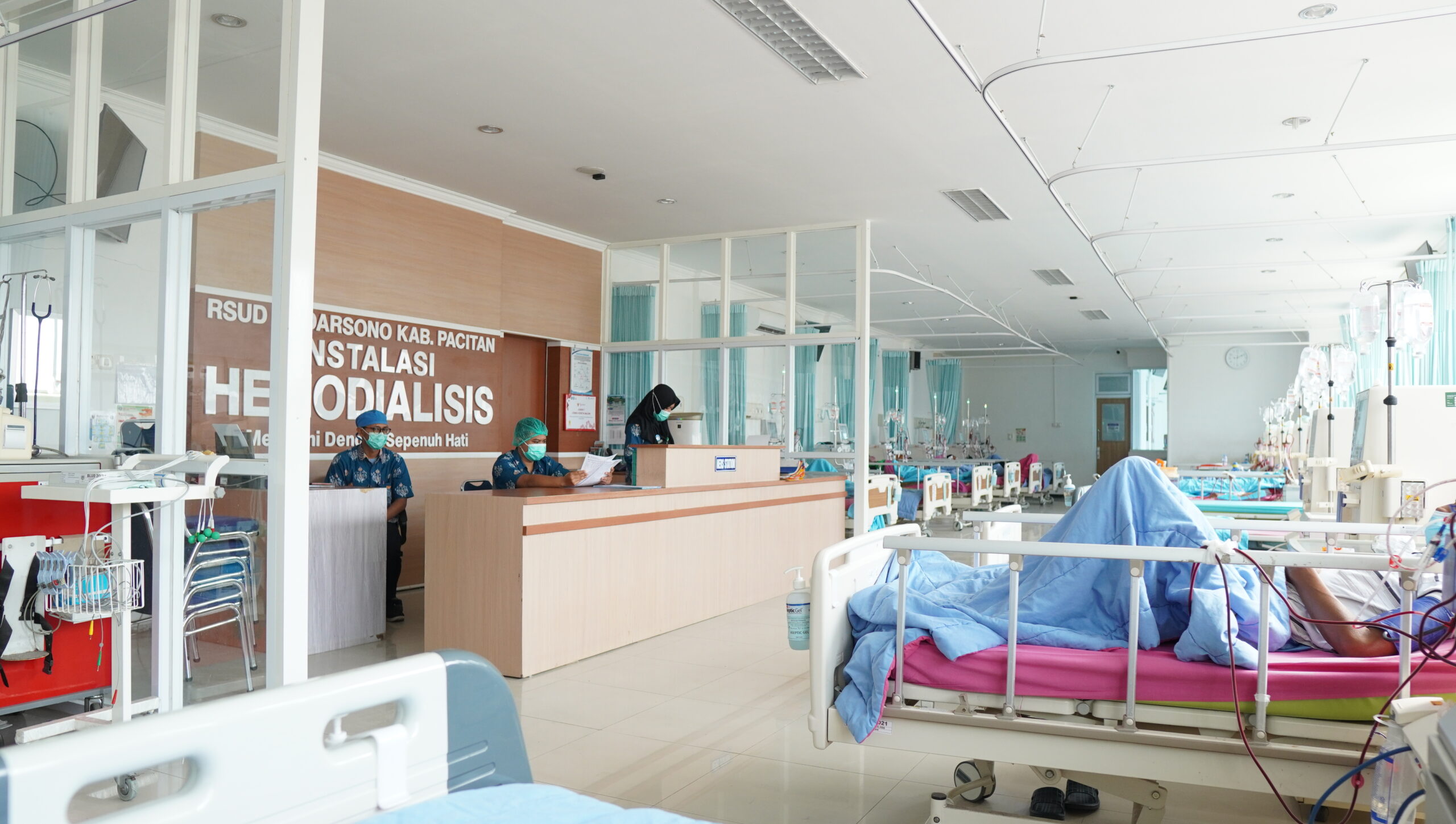 Instalasi Hemodialisis merupakan salah satu unit pelayanan yang ada di RSUD dr. Darsono Pacitan. Instalasi Hemodialisis menjadi fasilitas pelayanan hemodialisis bagi penderita penyakit ginjal yang membutuhkan terapi pengganti yaitu hemodialisis ataupun peritoneal dialisa.