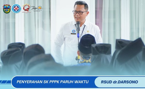 Hari yang penuh kebahagiaan bagi 184 pegawai BLUD RSUD dr. Darsono yang kini secara sah menerima Surat Keputusan (SK) sebagai Pegawai Pemerintah dengan Perjanjian Kerja (PPPK) Paruh Waktu. SK ini diserahkan langsung oleh Direktur RSUD dr. Darsono, Rabu (26/11/2025).