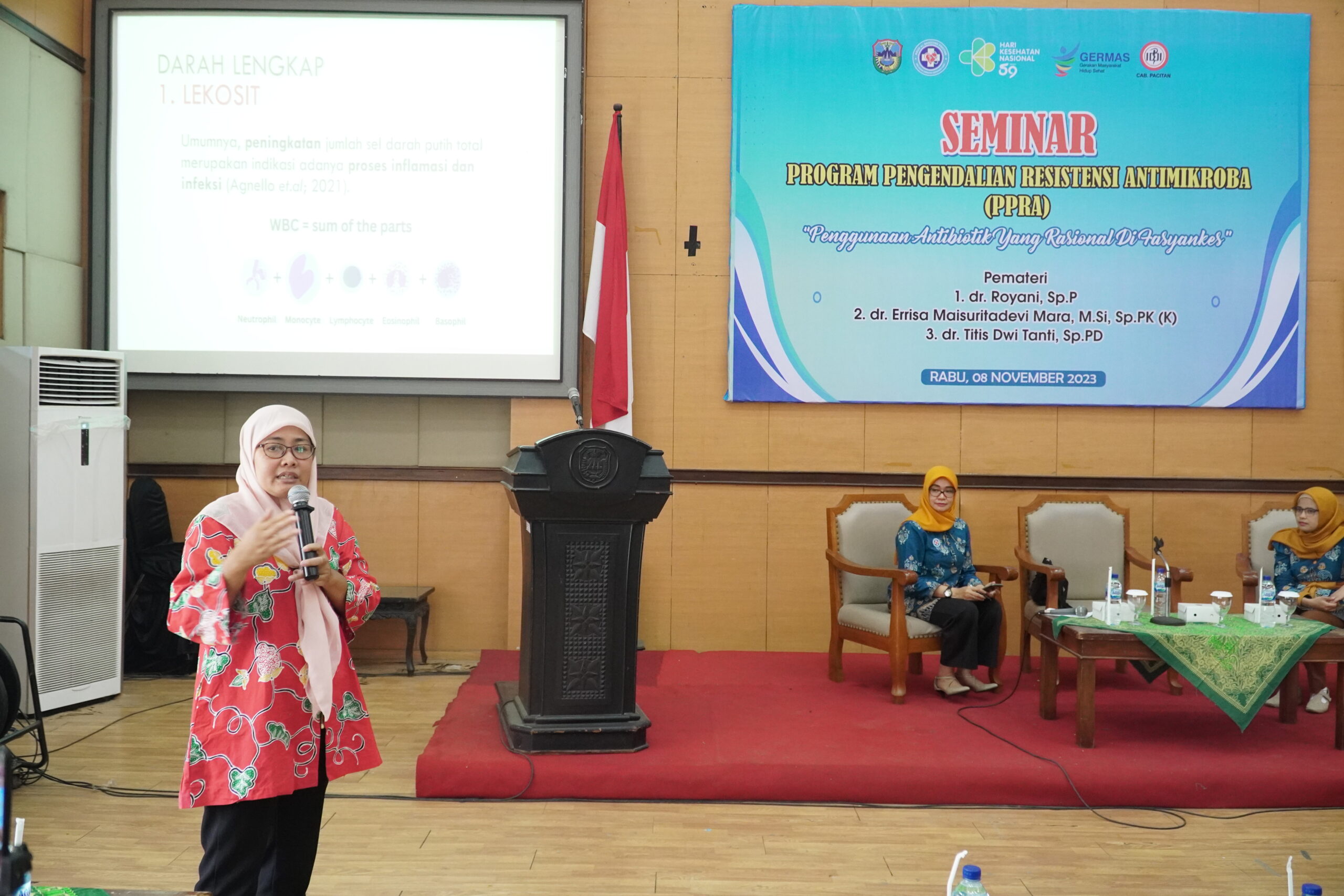 Masih dalam rangkaian peringatan Hari Kesehatan Nasional (HKN) Tahun 2023, RSUD dr. Darsono bersama dengan Dinas Kesehatan melaksanakan Seminar Program Pengendalian Resistensi Antimikroba (PPRA) di Gedung Karya Dharma Kabupaten Pacitan, Rabu (08/11).