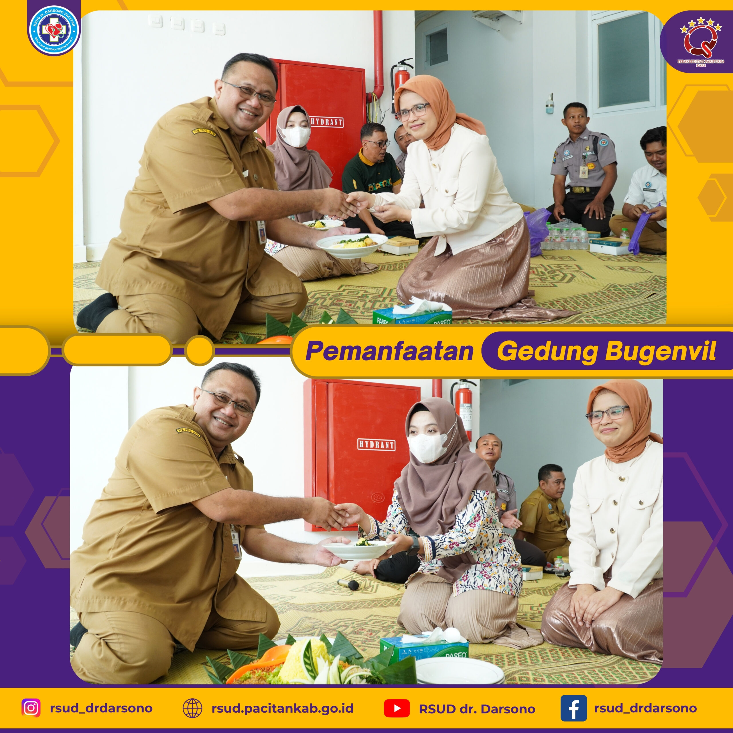 Proses perpindahan pagi ini diawali dengan Doa Bersama dan prosesi pemotongan tumpeng yang dipimpin langsung oleh Direktur RSUD dr. Darsono, dr. Iman Darmawan, M.Kes. Dalam sambutannya, dr. Iman menyebutkan bahwasanya dengan adanya Gedung Bugenvil ini diharapkan dapat meningkatkan kualitas kenyamanan pasien.